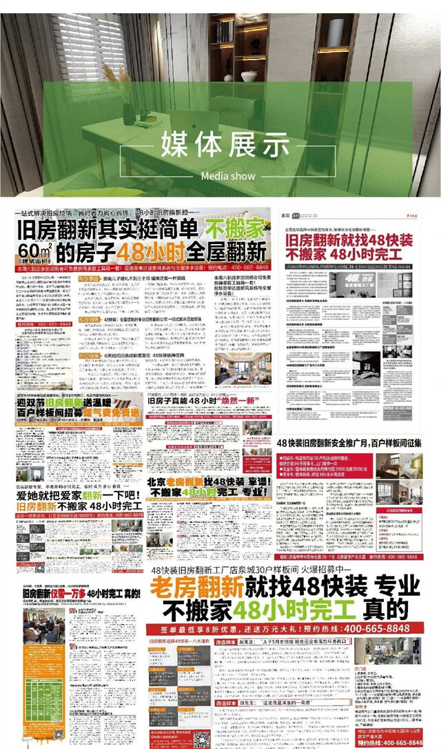 48快裝選擇舊房翻新這塊市場(chǎng),提供有溫度的服務(wù),承諾套餐內(nèi)容保證48小時(shí)完工,質(zhì)量不合格立即重裝,預(yù)算=決算,中途絕不加價(jià),絕不多收客戶一分錢(qián)。