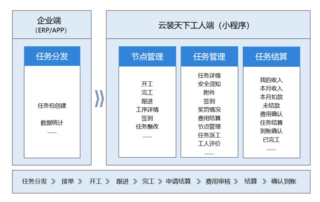 2、扁平化結算,企業(yè)端到工人端不再經過層層剝削,降低裝企成本、提高工人收益,并且規(guī)避財務風險;