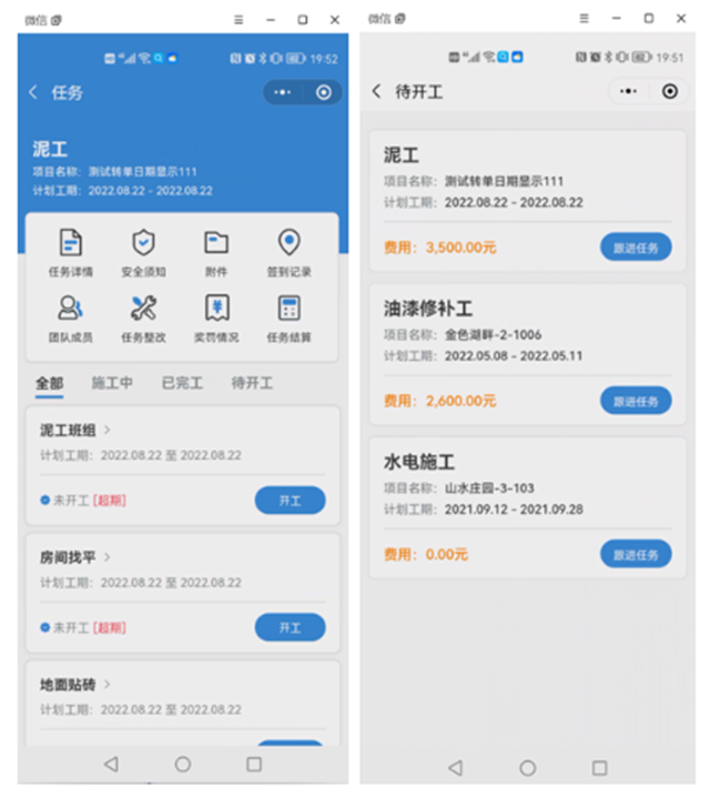 1、工人在線直接接單、開工、做工地播報、申請用工用料、結款。以前項目經理制不可控,現在簽單后,裝修公司產業(yè)工人管工期、管驗收、管質量,大大提高工地品質。而且還實現管理層同步管控工匠、項目。