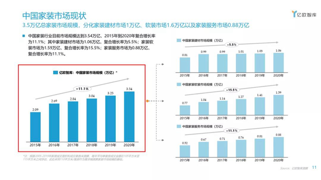 3.5萬億總家裝市場規模分化家裝建材、軟裝市場及家裝服務。家裝服務市場增速明顯加快。