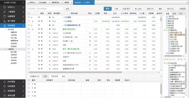 系統(tǒng)支持各種報價模式,并且可以在各種報價模式中自由切換,適應裝企的各種個性化報價需要,最大程度滿足客戶需求;系統(tǒng)可快速生成和打印報價書,可自定義主材估算,可打印封面、主材估算、編制說明、附件、通用材料、測量標準等等;