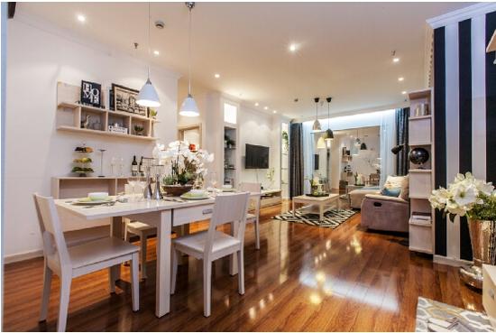 來到“一號作品”現(xiàn)代簡約樣板房,里面很多設計要素靈感來自于北歐、新加坡等主流居室設計潮流,黑與白的巧妙平衡彰顯出理性干練的的空間氣質。工作人員介紹說,80平米的1號樣板房一價全包,包硬裝、軟裝、家具、燈具、電器、床上用品。目前主流的樣板房共有4套,分別是一號作品現(xiàn)代簡約、二號作品時尚都市、三號作品法式經(jīng)典和四號作品美式休閑。而四套作品的價格區(qū)間從97225到213902不等。“我們這里的爆款是80平米97000多元的樣板房,銷售量過億。