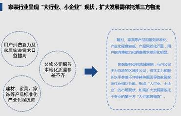 家裝公司數量仍然很龐大,但不是每個家裝公司都能自建倉儲物流體系,自己去搞定后面的問題呢。那樣也不一定是最經濟的,在過程中管理難度和管理成本很高,自己做很難跟上時代的發展。
