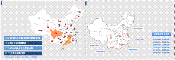 居家通是專業的針對家居行業一體化的物流服務公司,我們有對這個行業的思考和解決之道。目前已經在全國2200個區縣建立了落地覆蓋資源,有2000個特約服務商,相對已經成熟的工人有10萬多。我們主導的板塊主要是家具、建材等門類。目前在全國五大家居集散地東、西、南、北、中都有自己的布局,形成了全國干線網絡的支配。